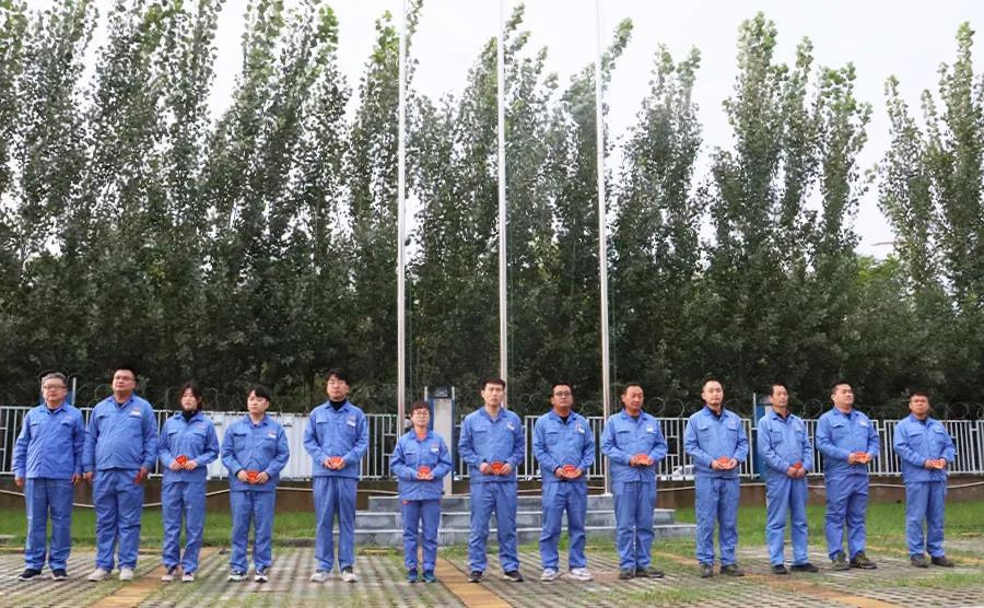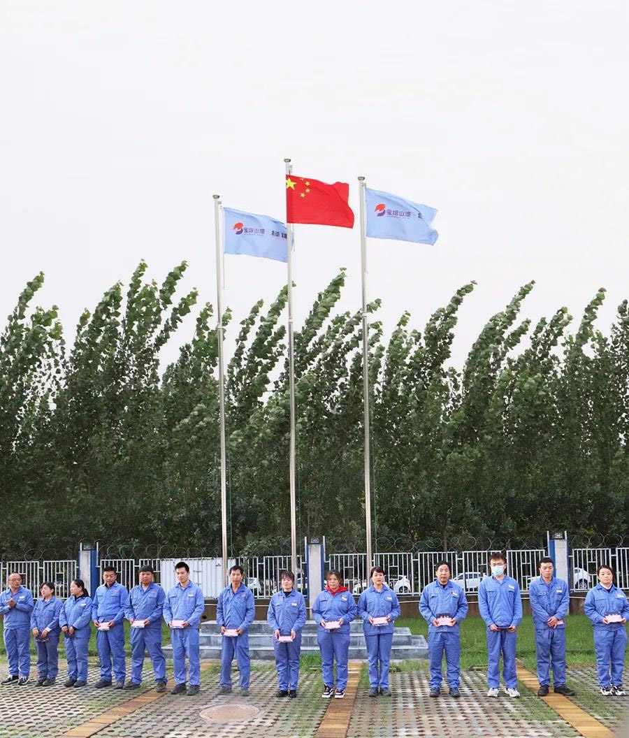 The autumn scenery of China is beautiful in October, the great changes in September celebrate the birthday, and the whole country celebrates the national day just past. Today we hold a flag raising ceremony to jointly wish the motherland prosperity. With the attention of all the staff and the solemn national anthem, the five-star red flag rose slowly, and then the factory flag of the economic construction company also fluttered in the wind.